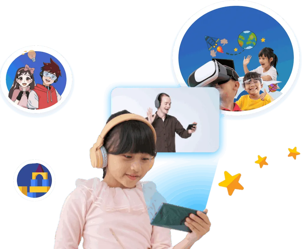 Kursus online untuk anak usia 4-8 tahun untuk program calistung, bahasa inggris, dan sains.