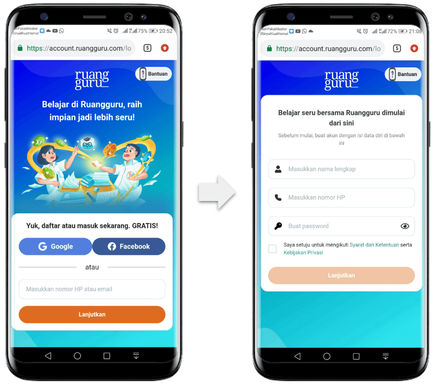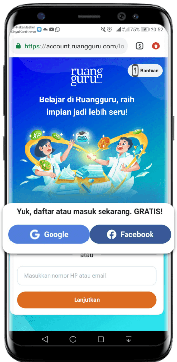 - Jika sebelumnya mendaftar dengan Facebook, pastikan kamu sudah login di Facebook dengan email yang digunakan untuk mendaftar Aplikasi Ruangguru